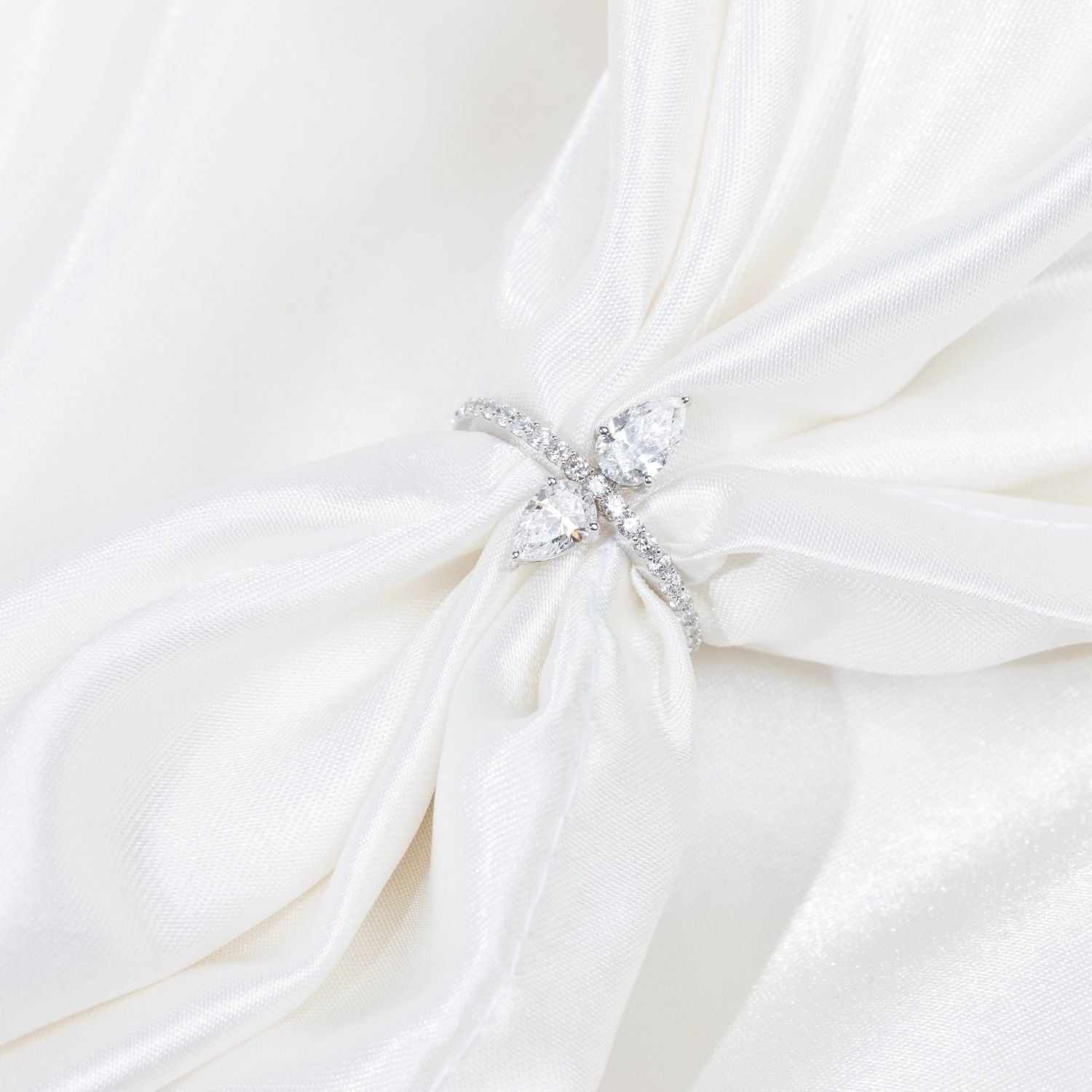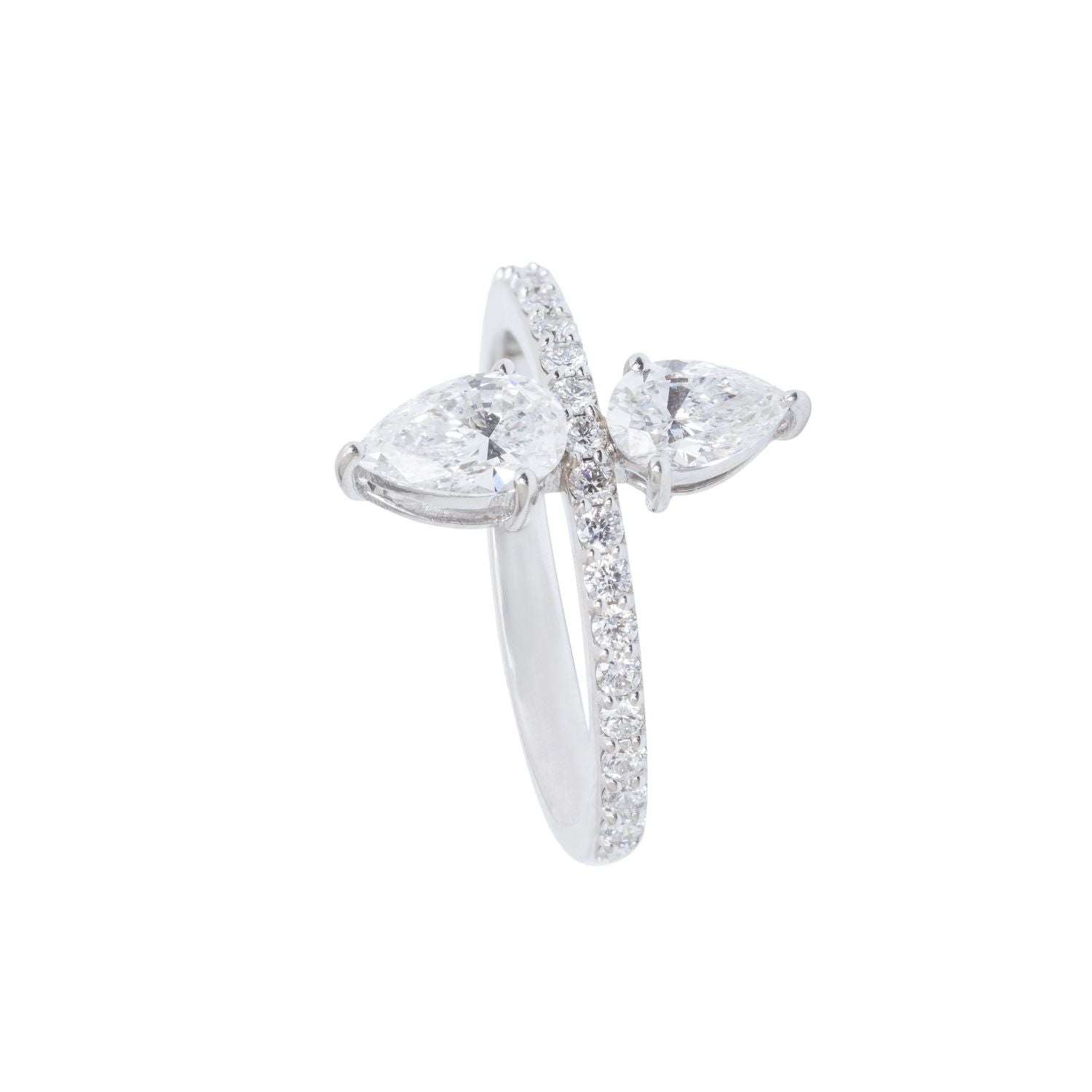 Radiant Brilliance: The meticulously cut diamonds in this ring radiate exceptional brilliance, capturing and reflecting light with unparalleled intensity. The pear-shaped center stone adds a touch of graceful asymmetry, enhancing the overall allure.