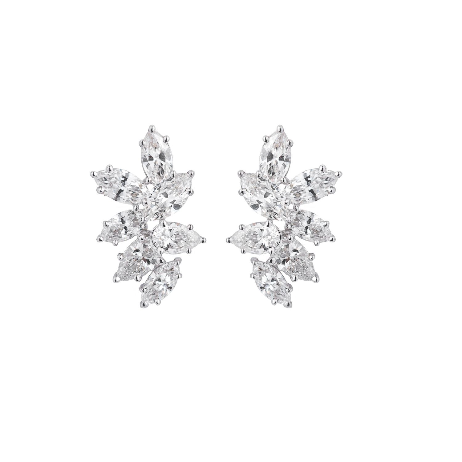 Timeless Elegance: These stunning diamond earrings showcase a timeless design that will never go out of style. The intricate cluster of diamonds, set in a delicate framework, creates a captivating and sophisticated appearance.