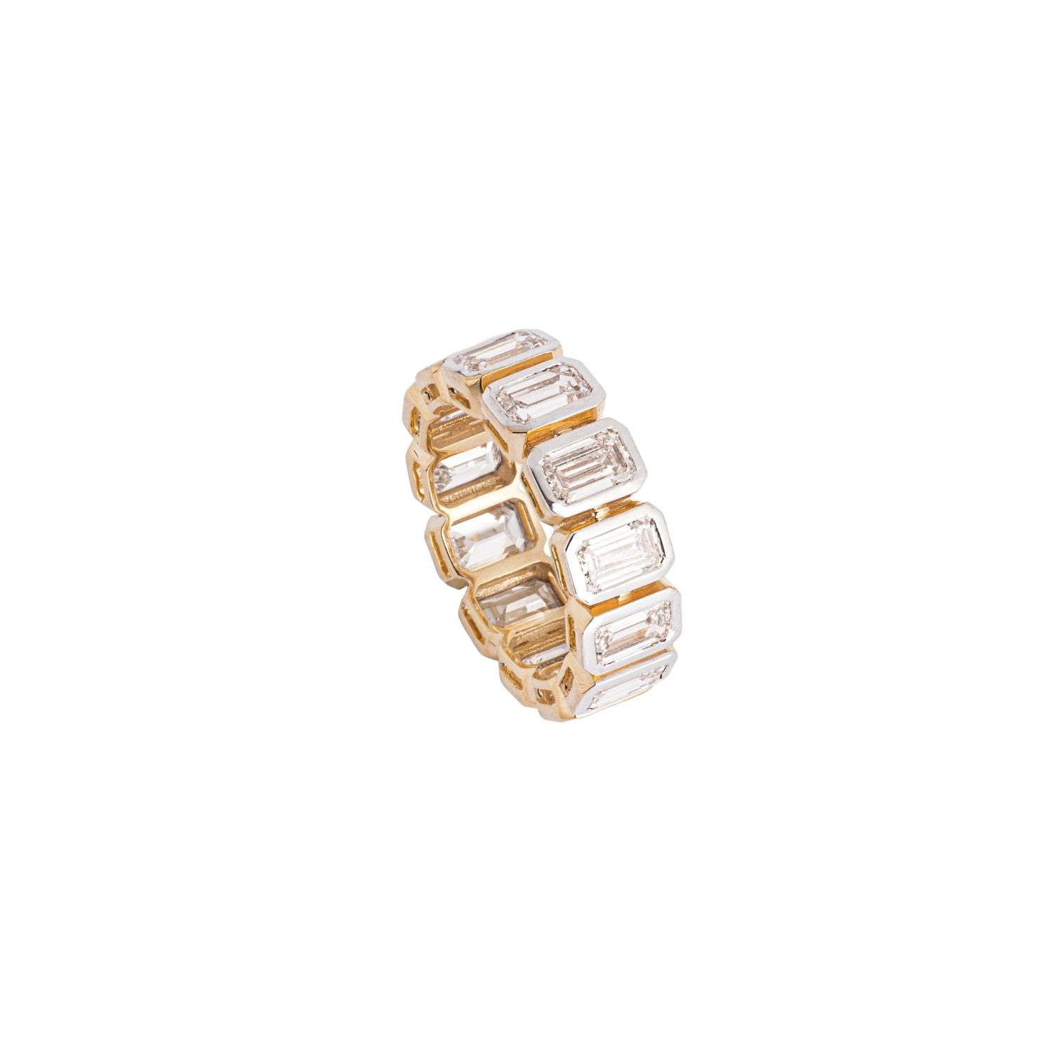 This eternity band, crafted with stunning 40-pointer emerald cut lab-grown diamonds makes for a bold and eye-catching statement. The setting consists of slight spaces between each sparkler that further magnifies its beauty.