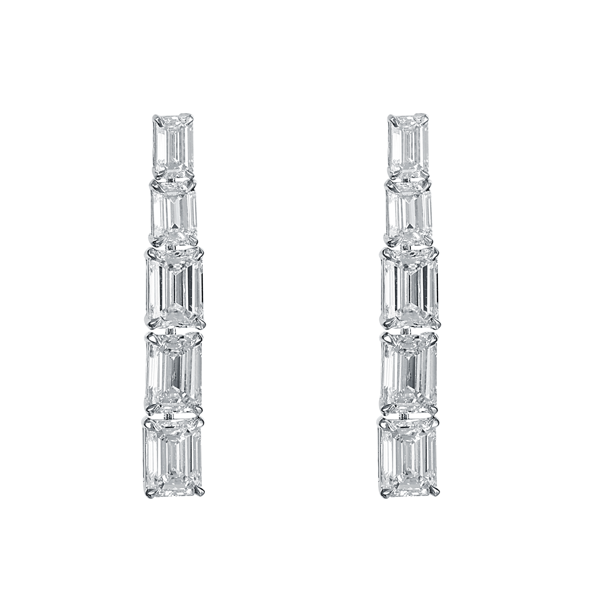 Sharp and elegant Emerald Cut diamonds set in a sleek modern design for a minimal yet striking look
