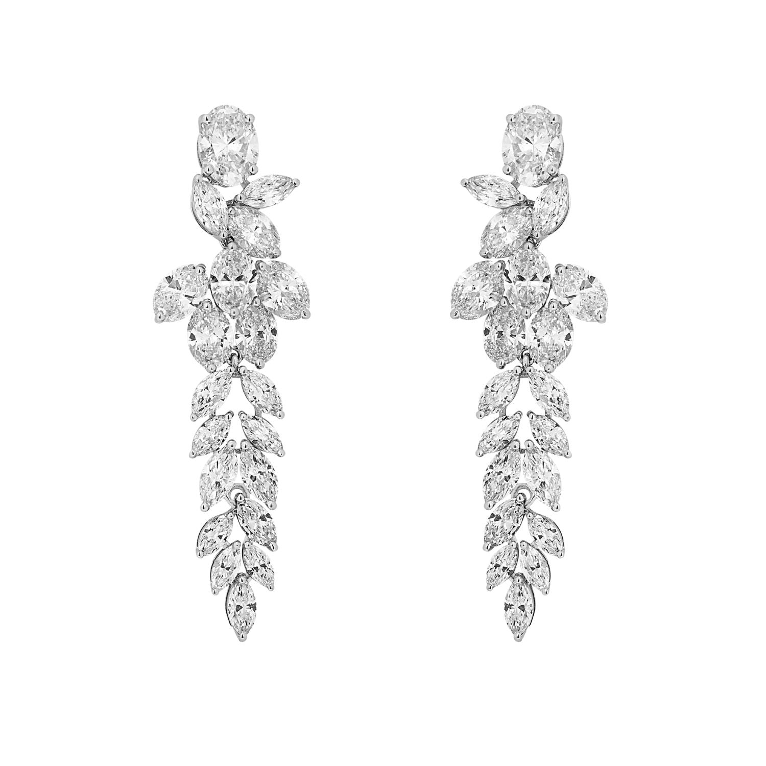 Radiant Brilliance: The meticulously cut diamonds in these earrings radiate exceptional brilliance, capturing and reflecting light with unparalleled intensity. The pear-shaped drop diamonds add a touch of graceful asymmetry, enhancing the overall allure.