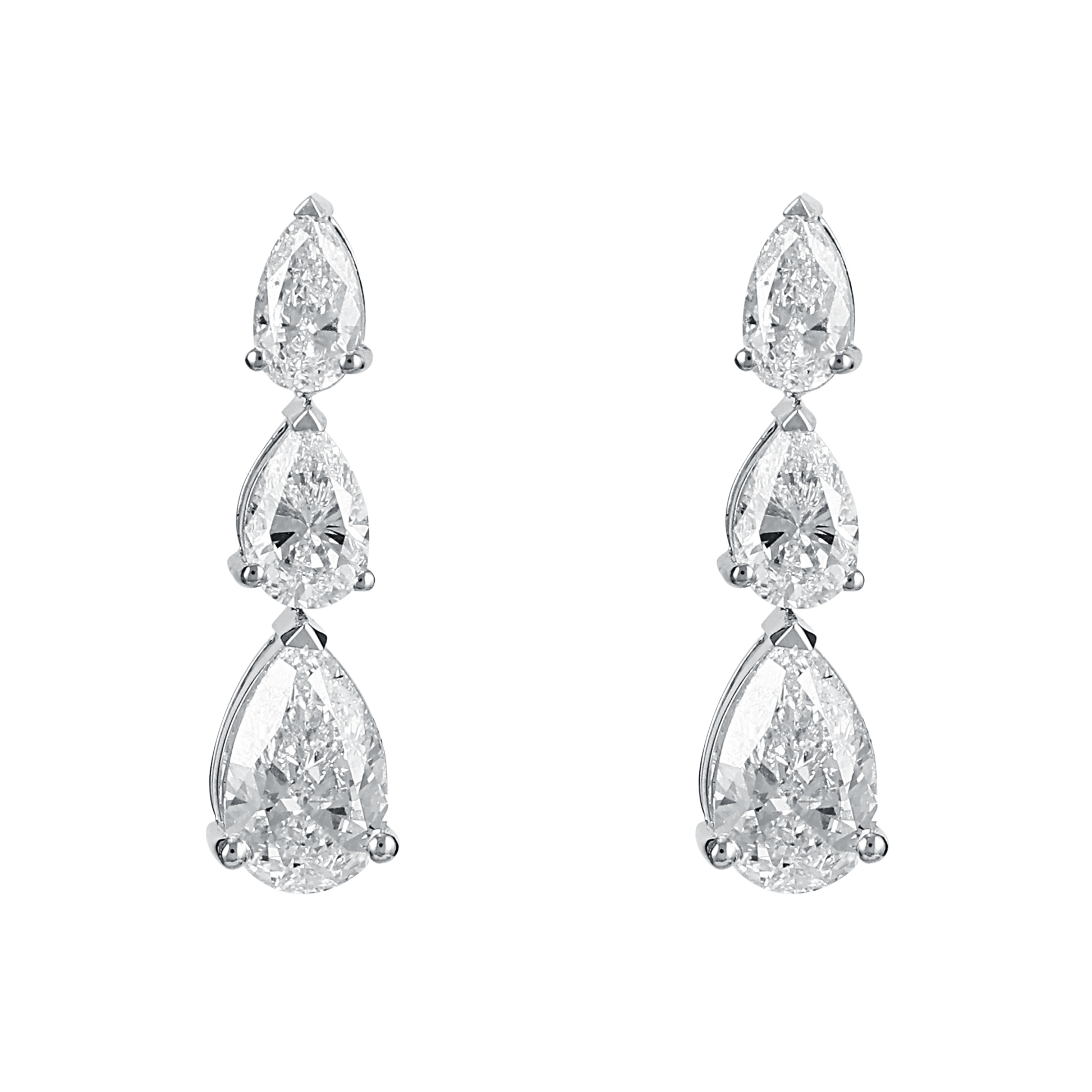 Radiant Brilliance: The meticulously cut diamonds in these earrings radiate exceptional brilliance, capturing and reflecting light with unparalleled intensity. The pear-shaped drop diamonds add a touch of graceful asymmetry, enhancing the overall allure.